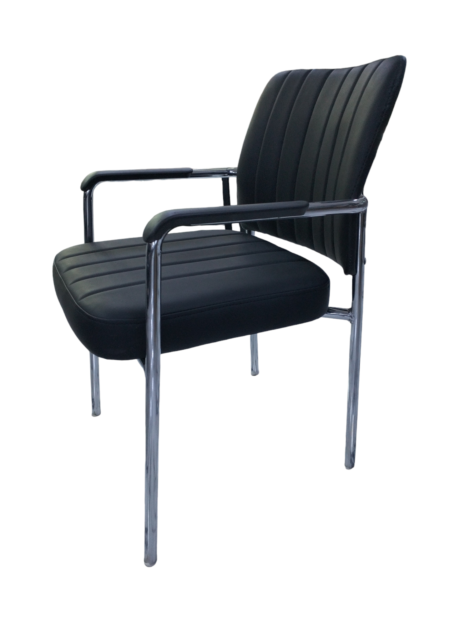 Chaise Visiteur Pieds Chromés Rembourrée, Noir, [IMPORTATION]