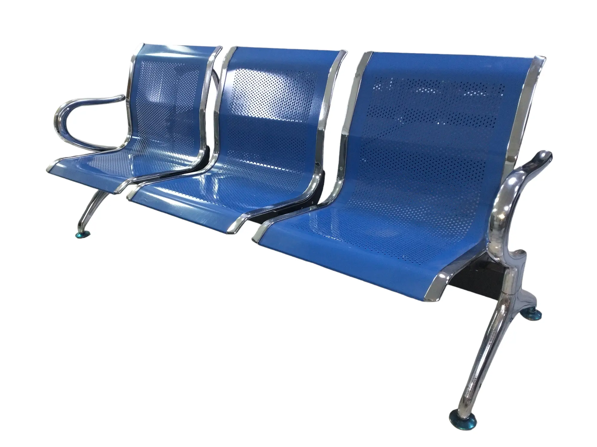 Banquette Chromée Inox 03 Places,[ Noir / Gris / Blue ] , [ IMPORTATION ]