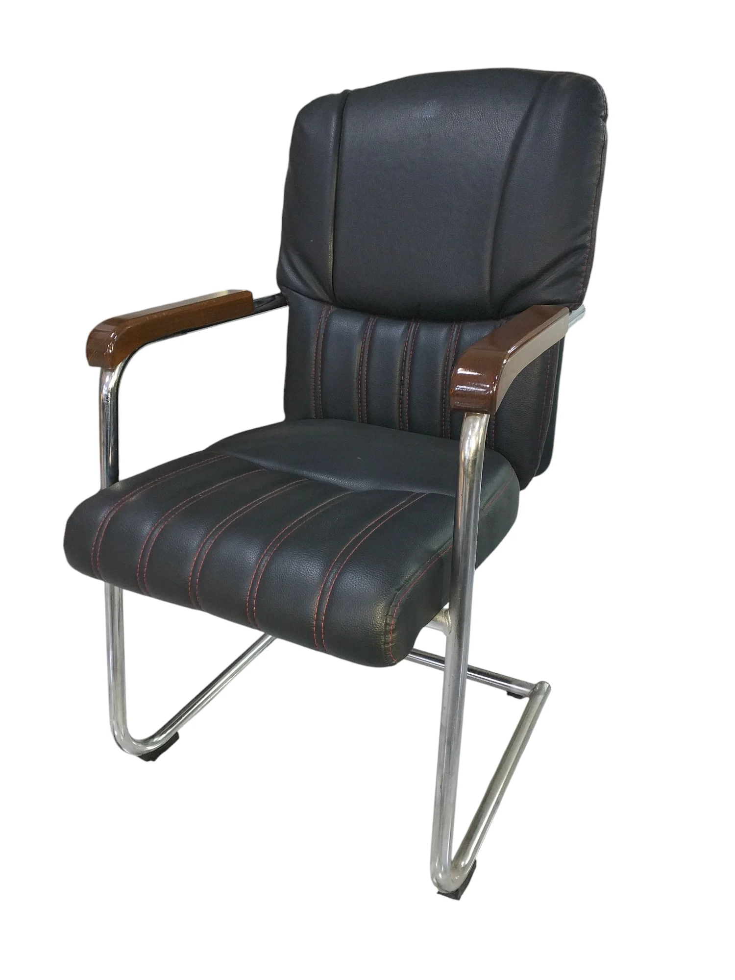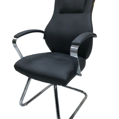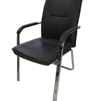 Chaise Visiteur Luge Chromée, Rembouré, Noir, [Local]